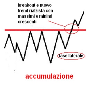 L’accumulazione avviene dopo una forte spinta ribassista in cui le mani forti comprano dalla massa spaventata.