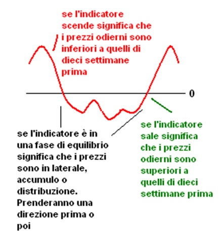 Esempio: se vogliamo costruire un indicatore che misuri il tasso di variazione (rate of change) su dieci settimane, il prezzo corrente va diviso per il prezzo di dieci settimane prima.