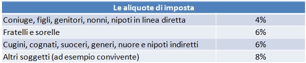 Le aliquote si applicano per la quota di eredità spettante ad ognuno degli eredi per la parte eccedente la franchigia.